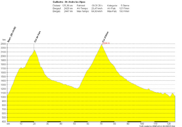 Der Tag ist von den Temperaturen sehr angenehm. Ein längerer Schauer zwingt uns zu einer Zwangspause in einer Creperie in Barcelonette. Das Sammeln auf der Passshöhe wird wegen des unsicheren Wetters nach Colmars in einen überdachten Biergarten verschoben.