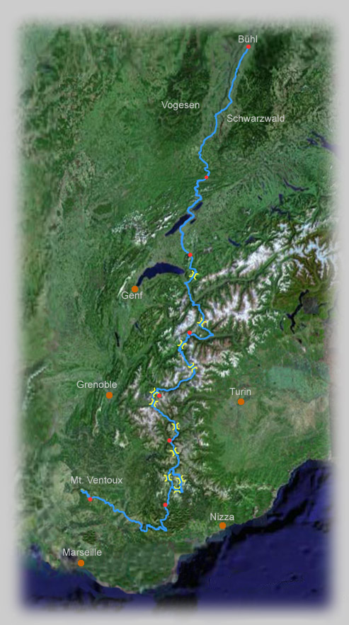 Im Juli 2005 organisierte die Bosch-Radsportgruppe Bühl eine Etappenfahrt von Bühl zum Mont Ventoux. 30 Radler legten in 9 Tagen 1427 km über 23900 Höhenmeter zurück.Ein Klick auf die Teilabschnitte führt zu den Bildern.